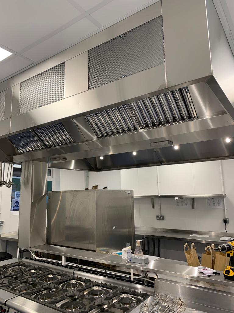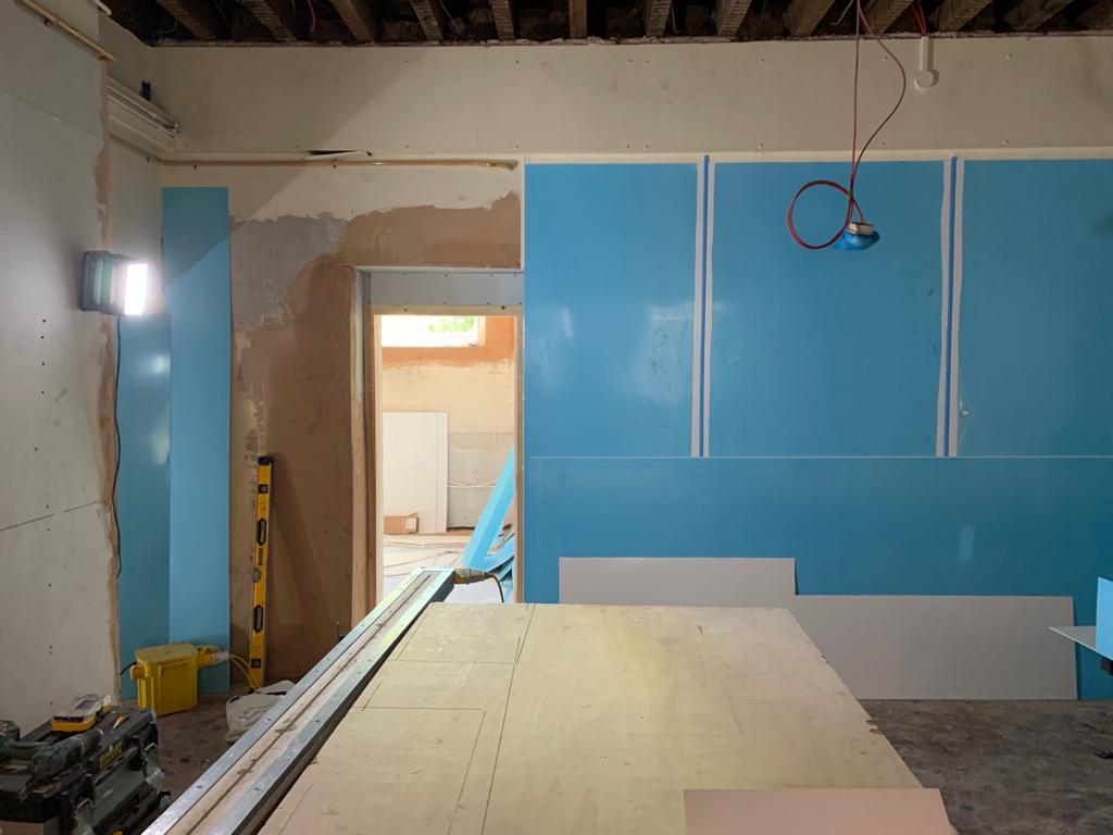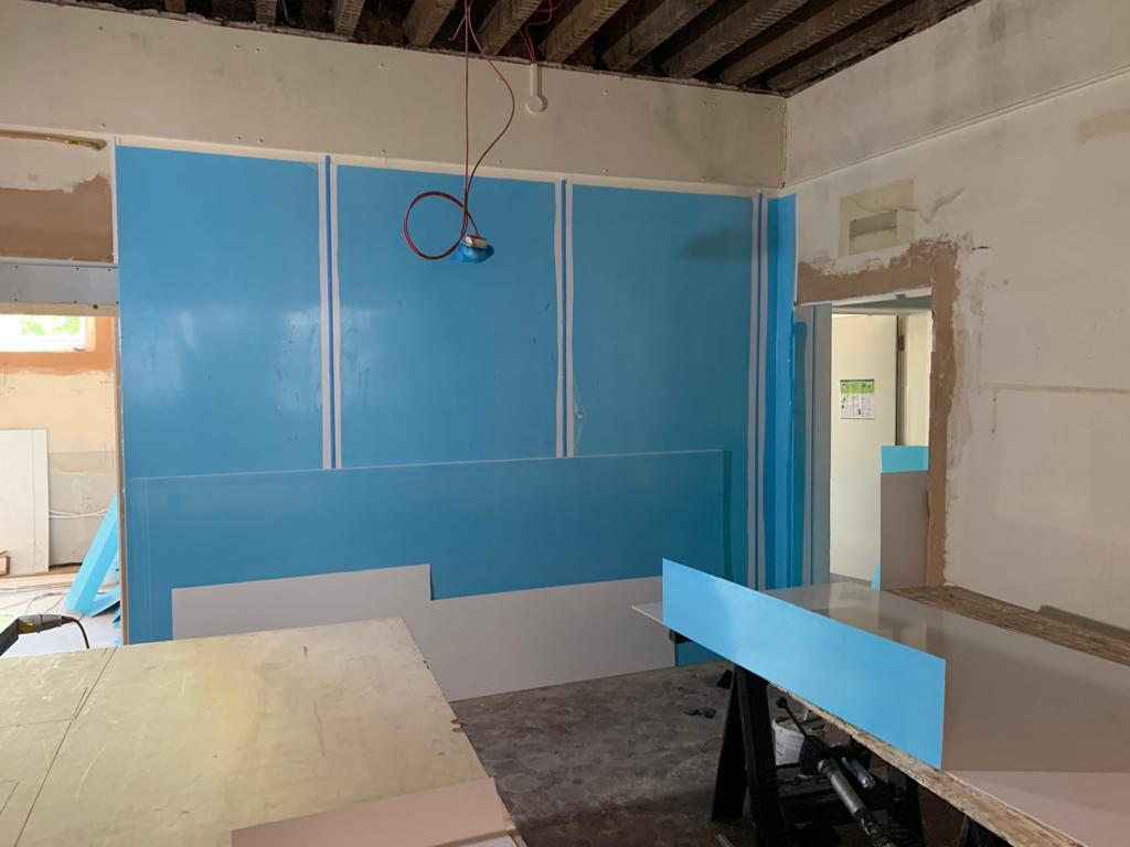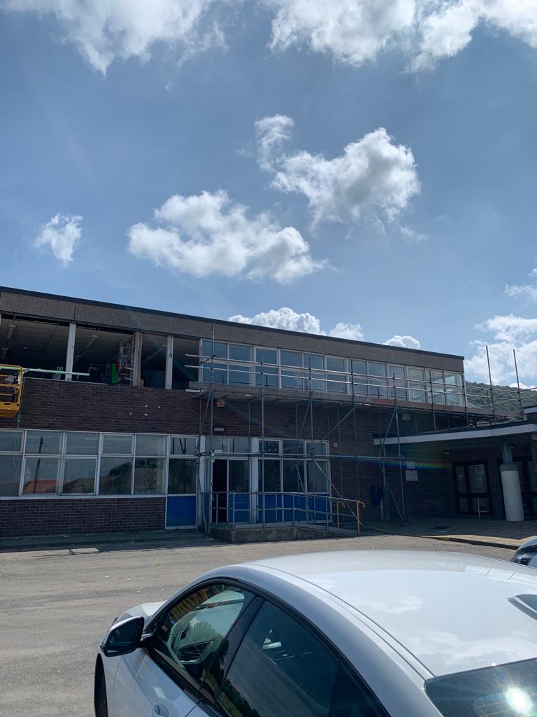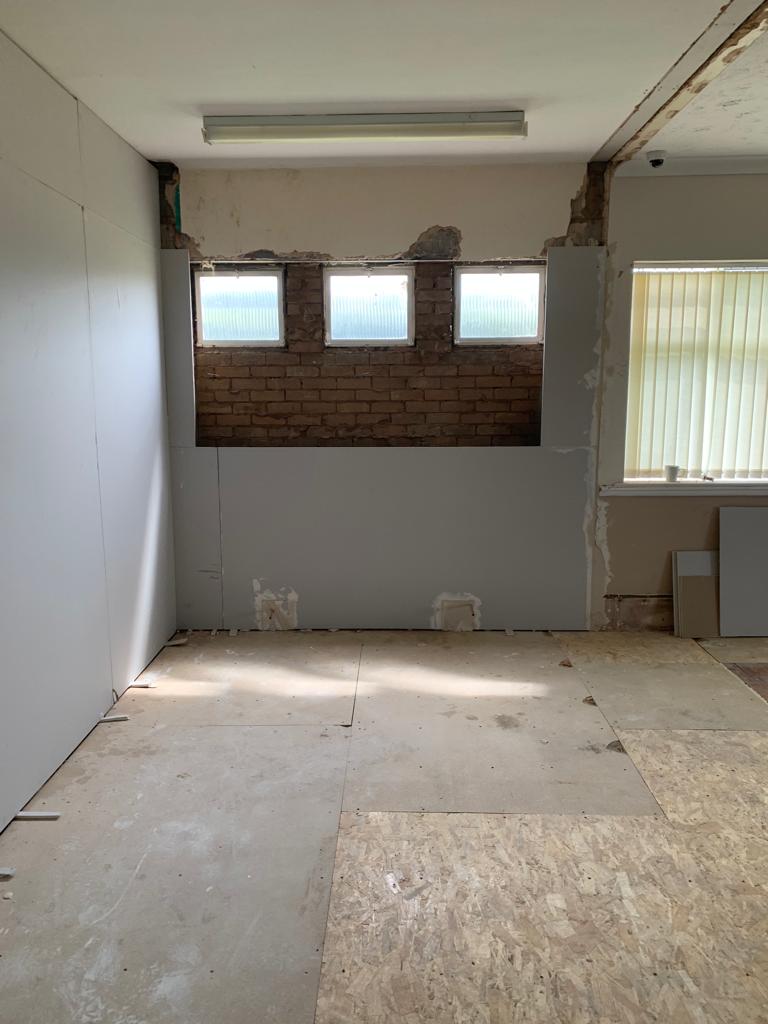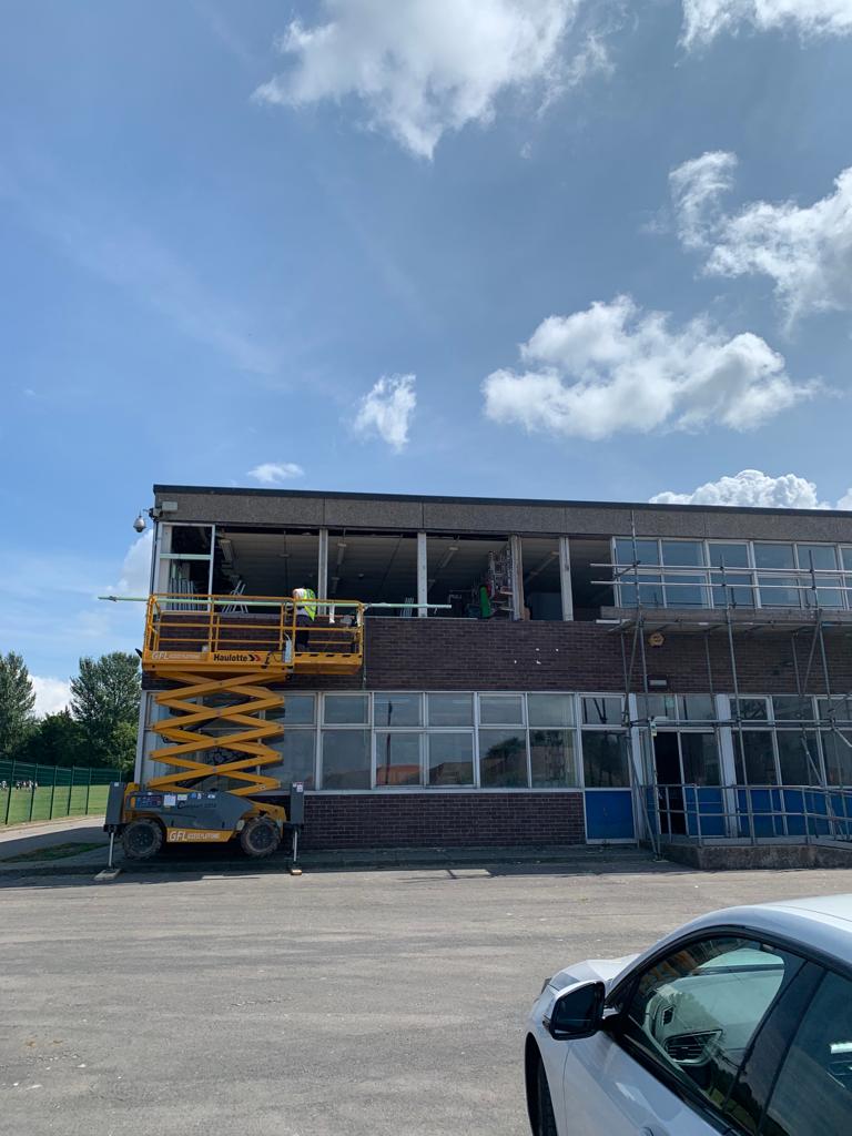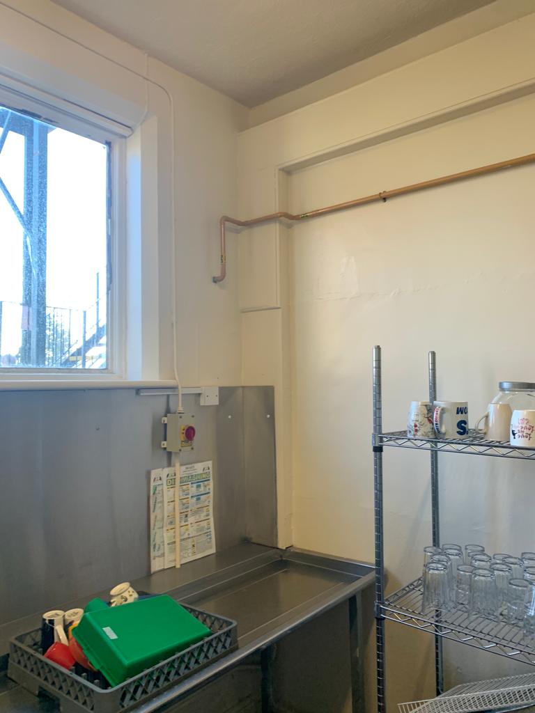 Full Kitchen replacement consisting of all new flooring, all walls cladded in new white hygienic wall boards , All new ceilings , full new extraction ventilation along with all new appliance's. Totally transforming the old unused kitchen and replacing it with a new fully equipped working kitchen and dinning room for the school. all new Mechanical and electrical services to the kitchen, store, offices and dinning areas. All new ceilings throughout. New access ramp to the dining areas.