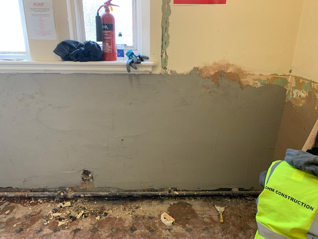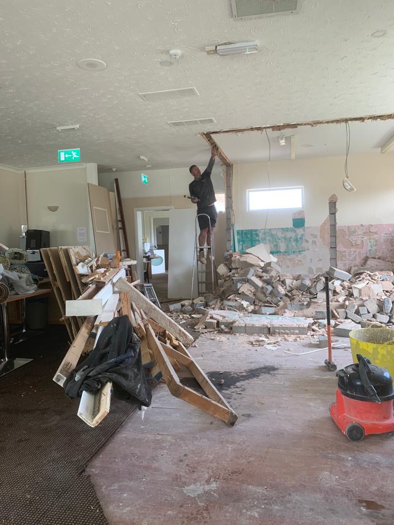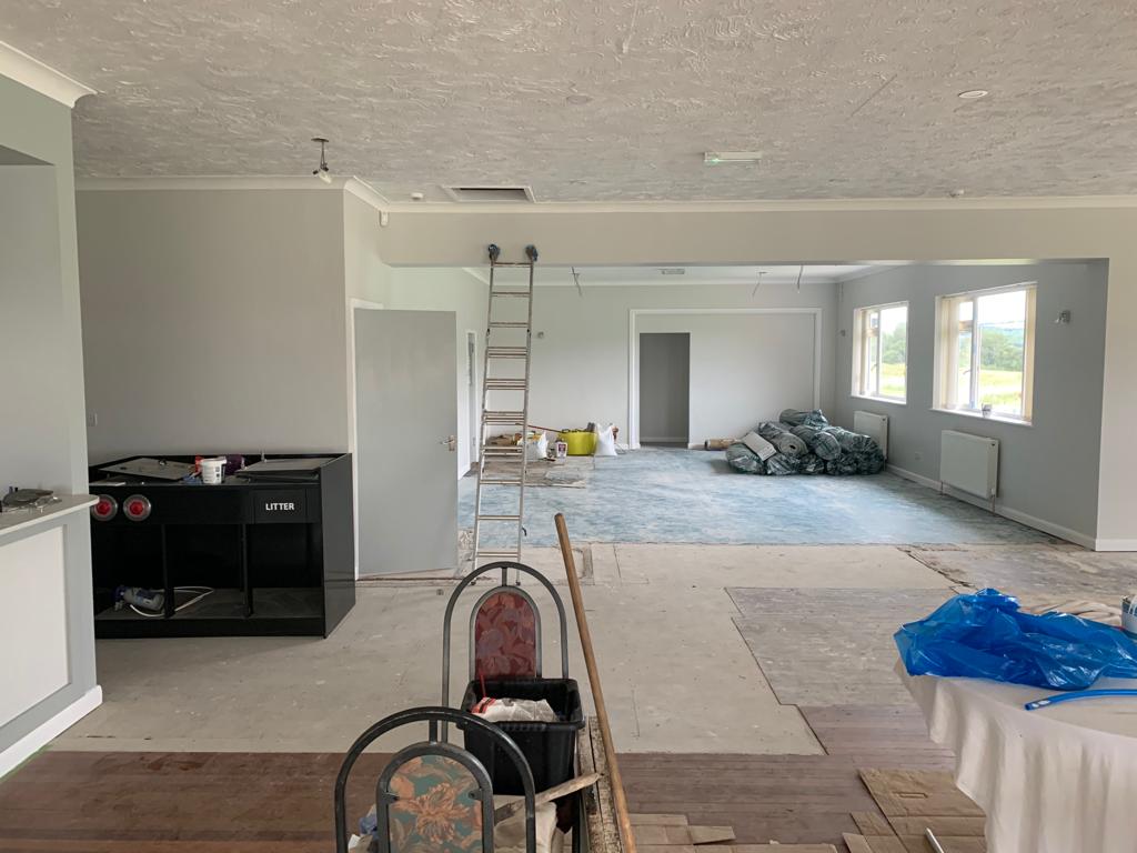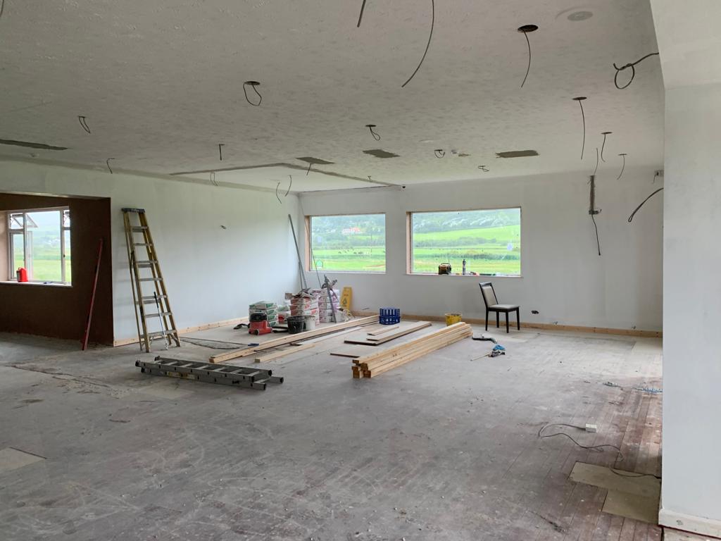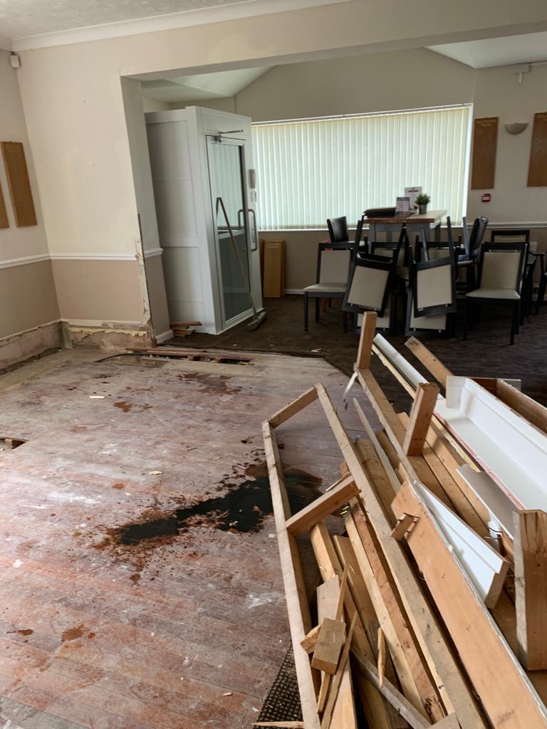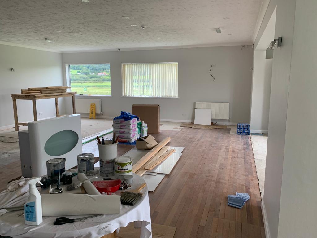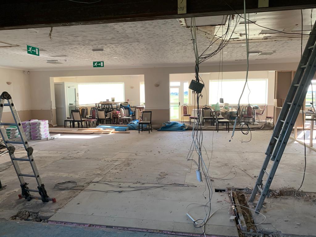 Total removal of the existing bar, Due to water damage along with full removal of the existing ladies toilets, and party walls. Construct a new toilet block with all fixtures and fittings . Construct a new double sided bar. One for members and one for visitors, In a new location that gives both members more space throughout. Working to ensure that the areas would be more welcoming to all to enjoy. all new interiors , Finishes and flooring completed to complete the transformation from what it was to what it is today.